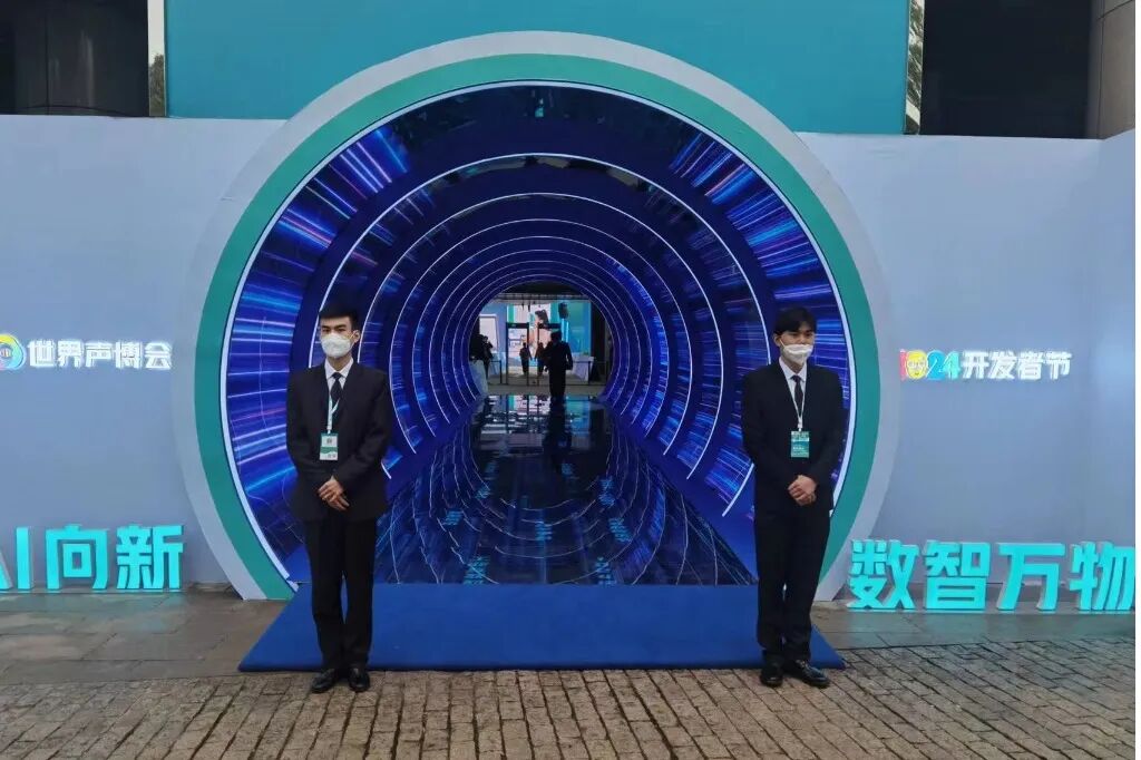 2022年11月17日至20日,由工业和信息化部、安徽省人民政府作为指导单位,安徽省经济和信息化厅、合肥市人民政府主办,科大讯飞股份有限公司、安徽省信息产业投资控股有限公司、中国语音产业联盟、长三角企业家联盟承办的第五届世界声博会暨2022科大讯飞全球1024开发者节,正式于安徽合肥奥体中心召开。本届大会的主题为“AI向新·数智万物”,由开幕式、主论坛、超200场全域行业峰会、2.7万平方米展区、上千款科技产品等多个板块和元素组成。振远特卫保安集团承担了本次大会全程安保任务。